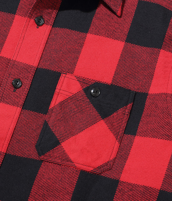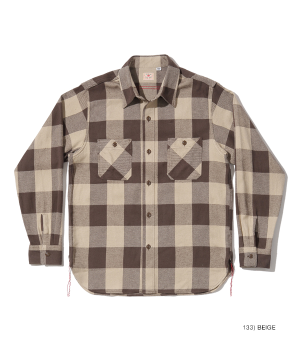 シュガーケーンが資料として保管するヴィンテージをベースに、2本針巻き縫いの縫製や各部の仕様など、1950~60年代のディテールを再現した王道的なチェックシャツ。王道のバッファローチェックは数社のヴィンテージシャツから柄のサイズや色を選抜してリリースしている。今年は目新しいベージュとイエローをエントリー。経糸に20番手双糸、緯糸に10番手単糸を使い、糸の打ち込みをしっかりと入れたハリのあるツイル生地を使用。