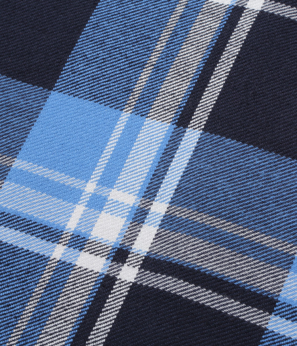 シュガーケーンが資料として保管するヴィンテージをベースに、2本針巻き縫いの縫製や各部の仕様など、1950~60年代のディテールを再現した王道的なチェックシャツ。1980年代のJ.C.Penney / BIG MAC のシャツから起こした大柄のチェックは経3色×緯3色構成で、カラーによって異なる雰囲気に仕上がっている。経糸に20番手双糸、緯糸に10番手単糸を使い、糸の打ち込みをしっかりと入れたハリのあるツイル生地を使用。
