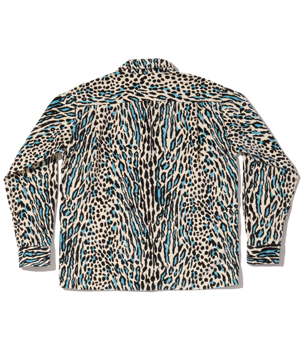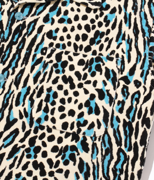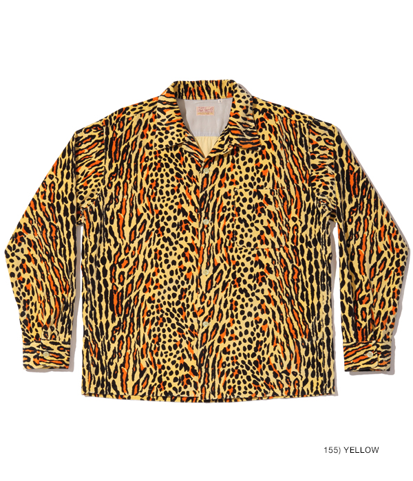 50sカルチャーを象徴するデザインのひとつ、アニマル柄。この柄は数あるヒョウ柄の中でも特徴的なパターンで、オセロットという山猫の毛皮に似た斑模様をベルベット生地にオーバープリントで再現している。ヴィンテージではレディースのアウターなどにみられる柄であるが、このようなメンズのスポーツシャツは希少。