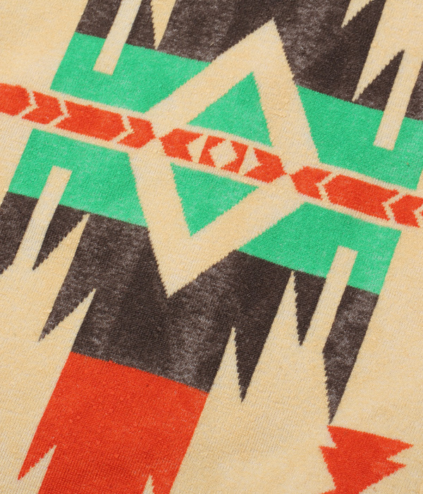 パイル織物の世界的な産地である紀州・和歌山で生産。1930年代に作られたチマヨブランケットの柄を再現している。プリントではなくデザイン自体が生地に織り込まれるジャガード生地であり、生地に自然な立体感が現れている。色褪せや色落ちの心配も少ない。