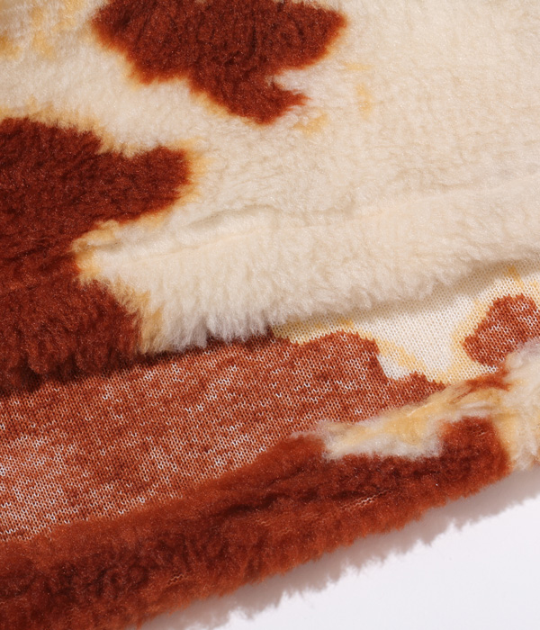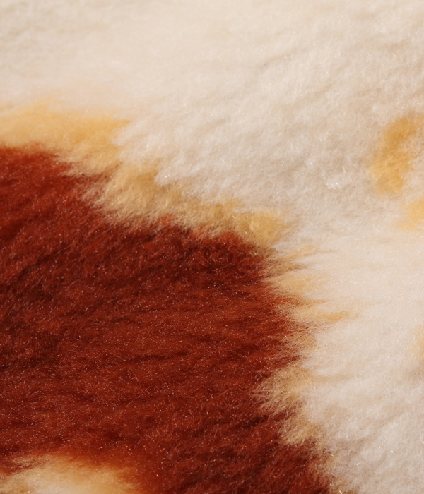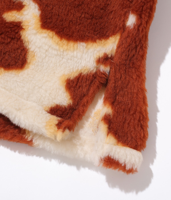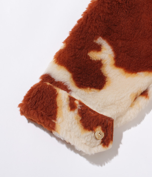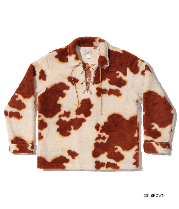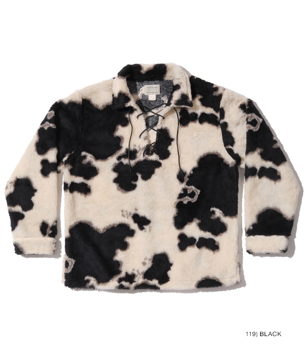 1950年代後期から1960年代前期にかけて存在した、通称「コディアック」タイプのプルオーバージャケット。ヴィンテージではアニマル柄の評価が高く、中でも人気のホルスタイン柄を再現。生地の毛足を長めにアレンジすることで、より秋冬向けに仕上げている。襟元のレースアップには牛革紐を使用。
