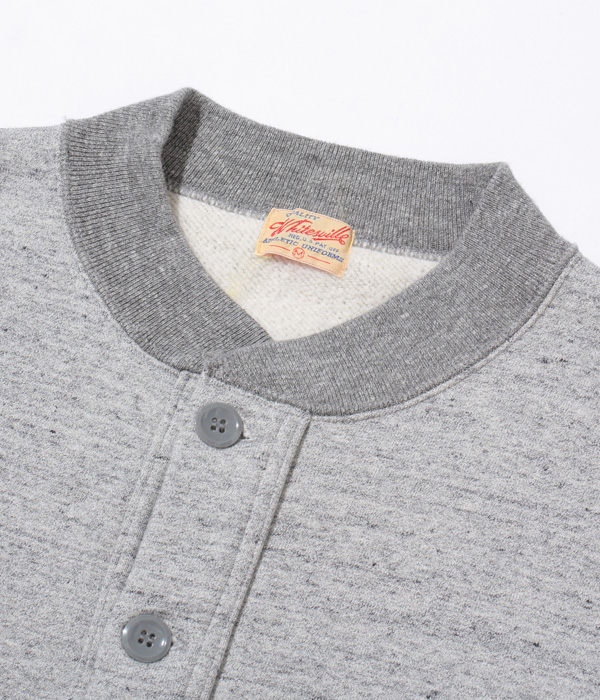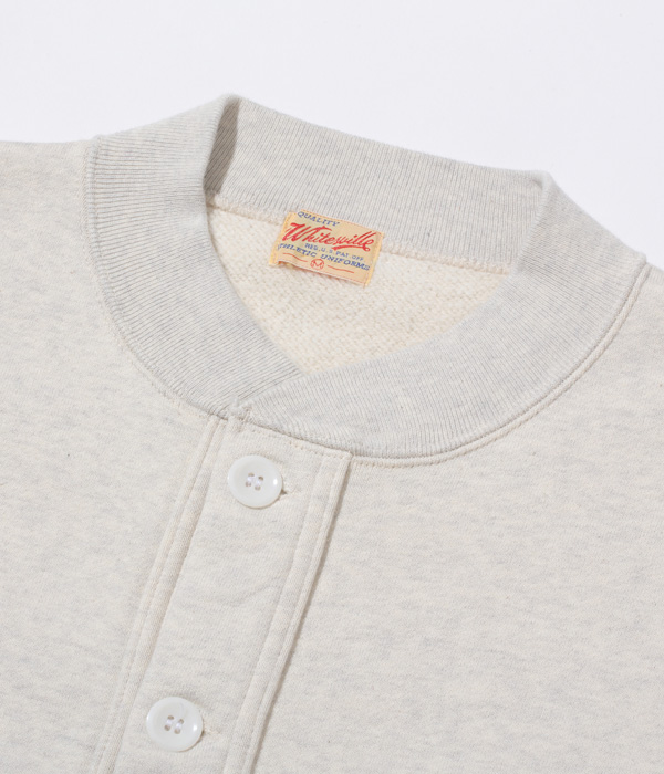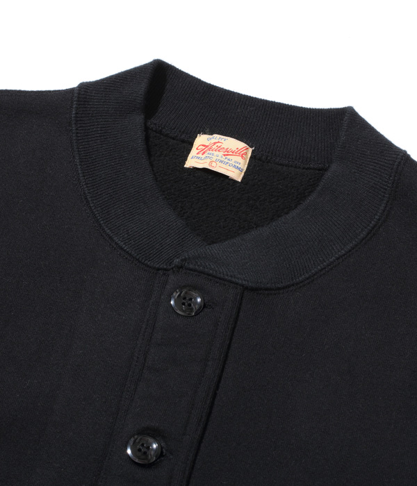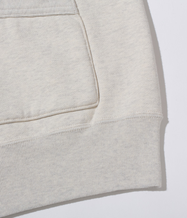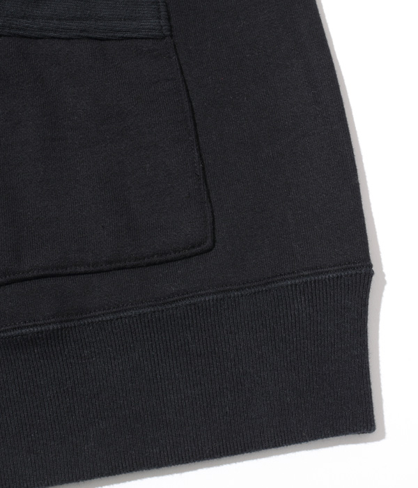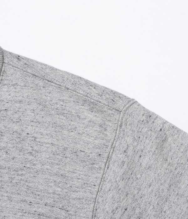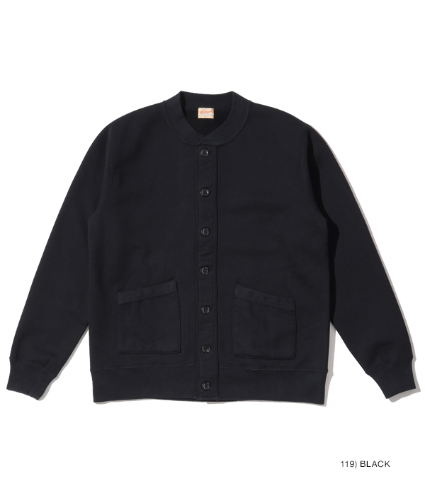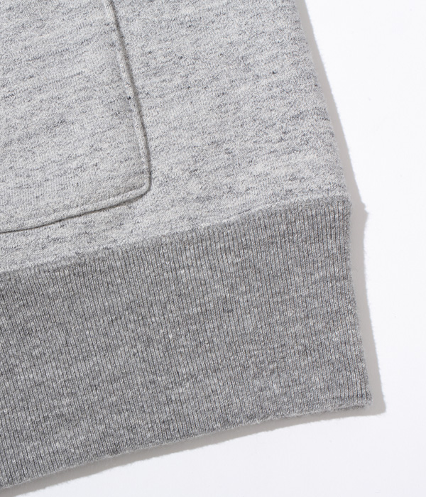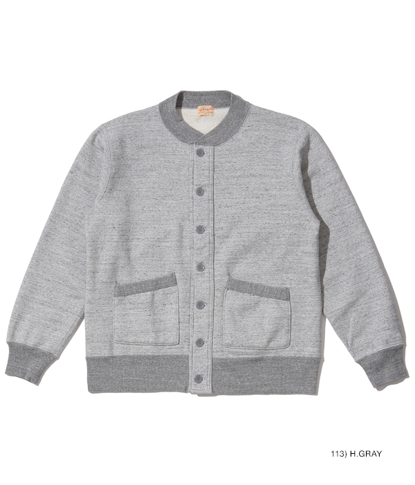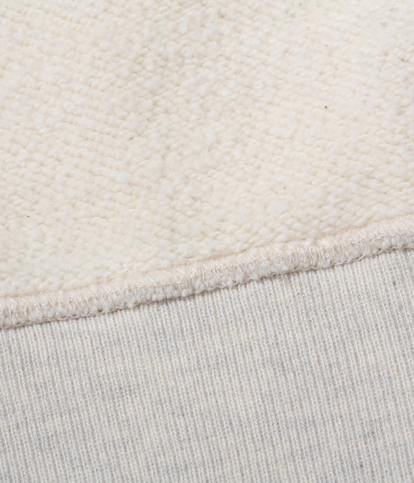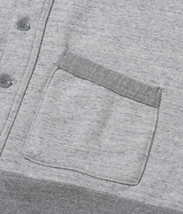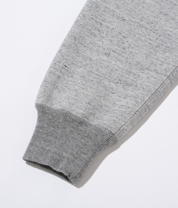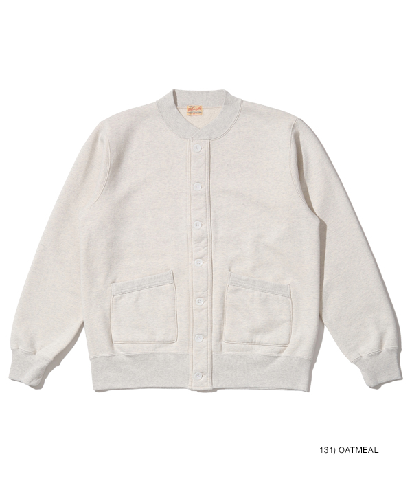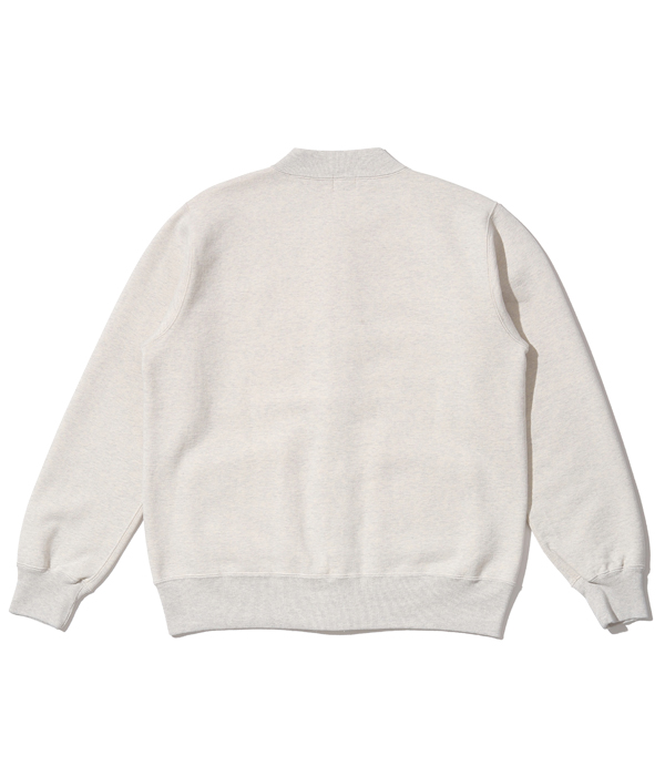 アワードジャケットの型をスウェット生地で置き換えたアスレティックコート。身頃は丸胴を中心で開反し、生地は20/20/7のヘビースウェット生地を使用。リブは10番手の糸で編み立てたリブ。フロントには皿型の尿素ボタンを採用し、ヘビーな生地ではあるが着やすく運動性の高い1着に仕上げている。