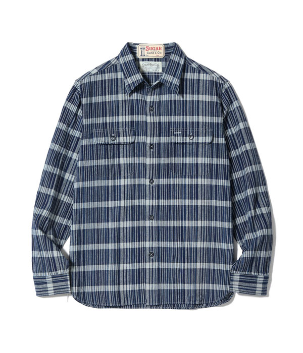 Lot No. SC28519 / FICTION ROMANCE 9oz. INDIGO OMBLE CHECK WORK SHIRT with MARBLE BUTTON