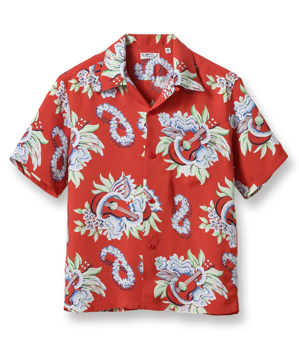 1940年代にサンフランシスコとハワイの間を航行していた豪華客船、マトソンライン。そのレストランメニューの表紙がシャツのモチーフとして使われている通称「メニュー柄」。画家フランク・マッキントッシュによって描かれたこのデザインは当時から人気を博し、現代においても世界中のコレクターたちが愛してやまないヴィンテージアロハシャツの名作のひとつ。