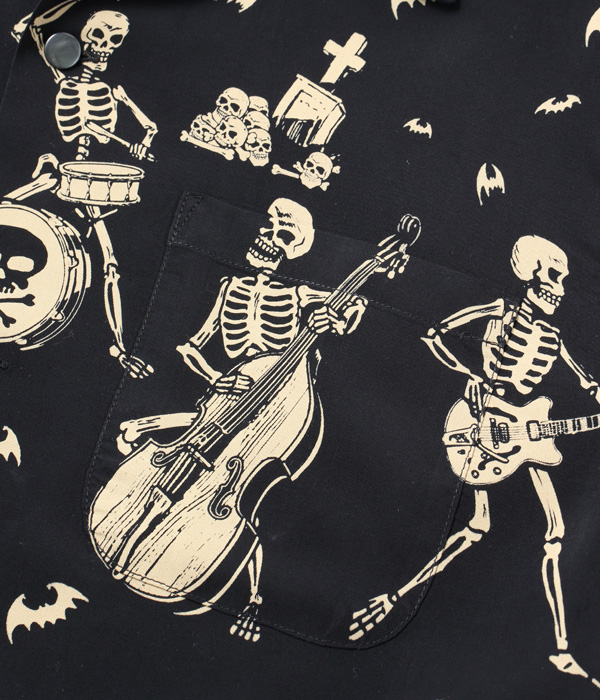 Lot No. SH38622 / HIGH DENSITY RAYON OPEN SHIRT “THE SKELETONES” by VINCE RAY