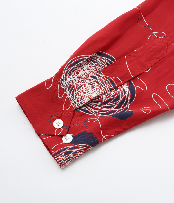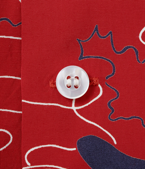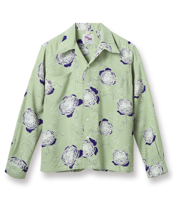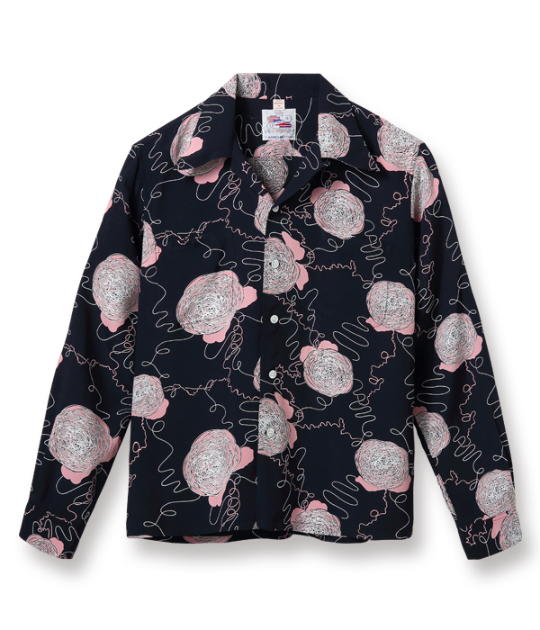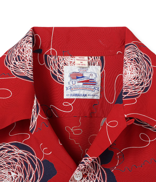 デューク・カハナモクは伝統的なアロハシャツのスタイルを維持しながら当時のアメリカ本土の流行も意識した独創的なデザインを幅広く展開し、多くの人々の心を掴んだ。本作もヴィンテージアロハシャツのコレクターだけでなく、50’sフリークたちをも魅了し続けるデザインで、海外のコレクターズブックにも掲載されており知名度も高い。ヴィンテージ市場で何種類もの配色が見つかっていることから、当時の人気の高さが伺える。