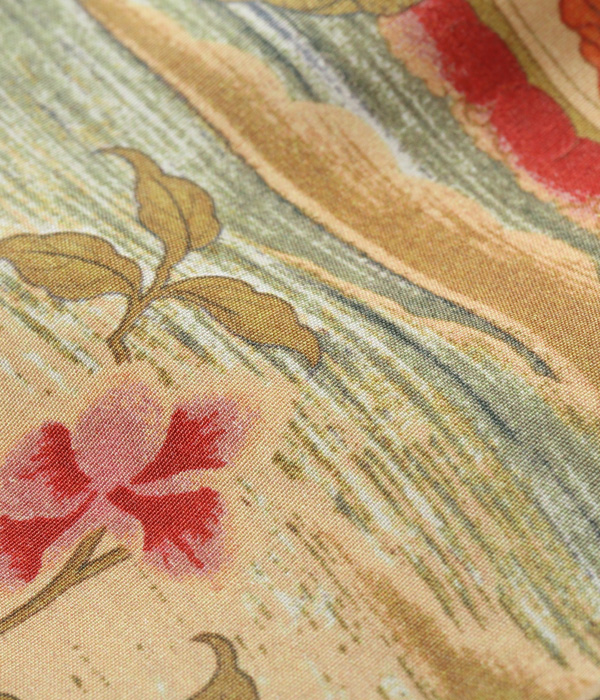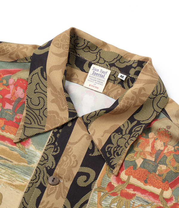 1970年代に京都で捺染され、日系の商社トリプル・タイムス・カリフォルニア社によってアメリカ向けにシャツ用の生地として輸出されたデザイン。当時の資料は生地しか現存しておらず、シャツとして生産したメーカーやブランドは未だに判明していない。しかし、緻密に彫られた型を幾重にも摺り重ねた完成度の高い生地であることから、熟練の職人による非常に優れた作品であることは間違いない。