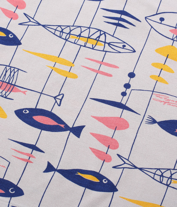 COOLMAX PULLOVER BUTTON DOWN SHIRT “CALDERESQUE MOBILE OF FISH”