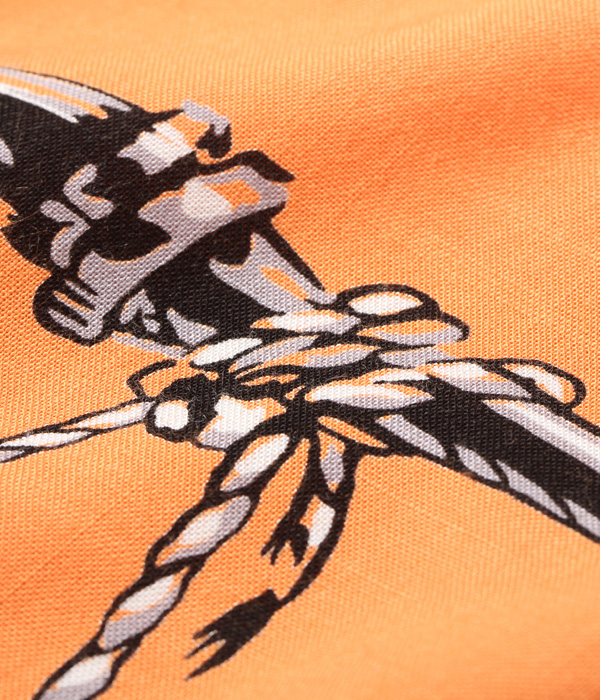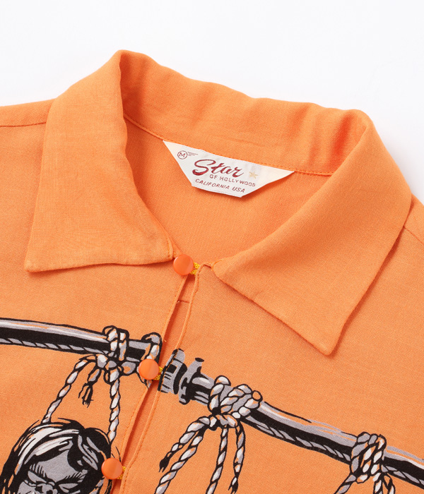 50年代当時、シュランケンヘッドはスターオブハリウッドだけでなく“SIR GUY”(サーガイ)というブランドからもリリースされていた。基本的なデザインは同じだが、モチーフの大きさや間隔、生地の種類、プリント手法も異なり、スターオブハリウッド製の方が年代の古いオリジナル。後に作られたサーガイ製と比較した場合、スターオブハリウッド製は絵柄がやや小さく、モチーフの間隔も狭い。プリントもオーバープリントではなく抜染となっている。このスターオブハリウッド製は現存数が極端に少ないため、これまで書籍にも掲載されることはなかった。2021年、遂にスターオブハリウッドのシュランケンヘッドが世に放たれる。