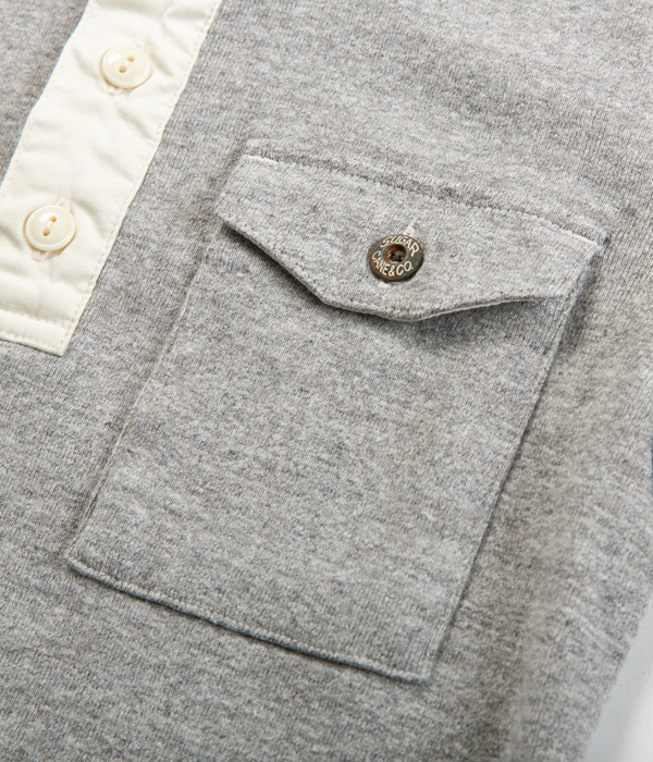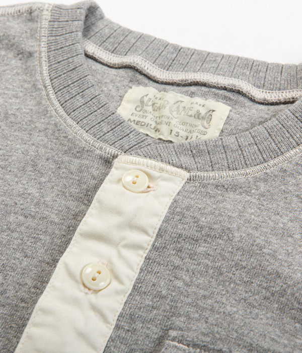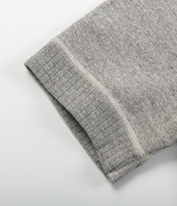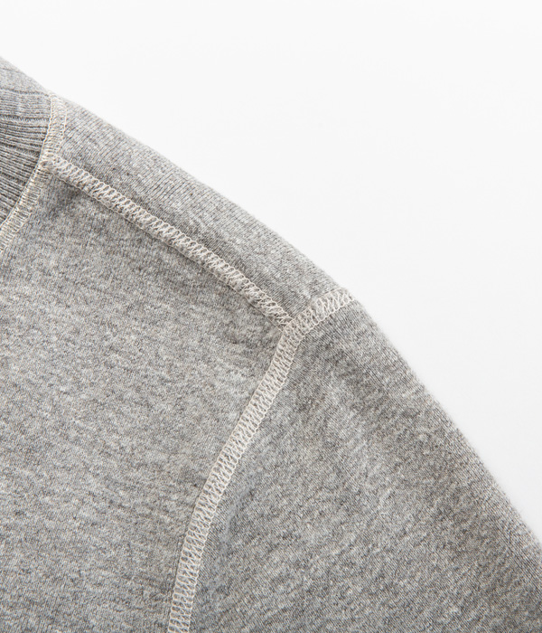 1950年代のヘンリーネックがベース。クオリティを追求し、超長綿、エジプト綿、ギザ綿をブレンド。肌触りが良く耐久性にも優れる。フラットシーマによる4本針の縫製で表面に縫い代が出ないため快適な着心地。