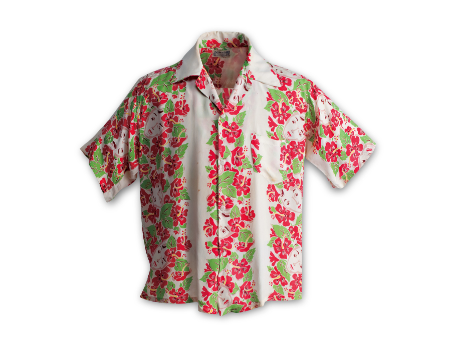 アロハシャツの歴史を語る上で、ムサシヤやキング・スミスと並んで重要なショップが1913年創業のイースト・インディア・ストア、後の〈ワットムルス〉である。インド系移民のG・J・ワットムルがホノルルで始めたショップで、世界中から様々な商品をハワイに輸入し販売していた。1930年代に入ると衣類を扱うようになり、日本からの輸入品が集められた「キモノ・ルーム」には壁縮緬や富士絹で仕立てたアロハシャツが飾られ、人々を魅了していた。そんな同社の最大の功績は、ハワイ柄のアロハシャツをいち早く発表したことだろう。アロハプリントの発明者と言っても過言ではないテキスタイルデザイナー、エルシー・ダース。ワットムル家へ嫁いだ姉を追ってハワイへ移住した彼女は当初ウィンドーディスプレーを手掛けていたが、1936年からデザイン活動を始め、翌年にはブレッドフルーツ、フラガールといったそれまでにない斬新なハワイ柄の生地を15柄完成させる。以降、同社は戦時中もアロハシャツを扱い、戦後はカメハメハやシャヒーンの製品に〈ワットムルス〉や系列店であった〈レイラニ〉の織りネームを付けて販売。1955年には〈ロイヤル・ハワイアン〉を買収して傘下に収め、ハワイ衣料専門のチェーン店として観光の目玉となった。