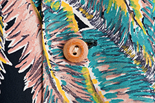 大胆な構図と動きのある背景が魅力的な作品。テキスタイルデザイナーのベラ・ストン・クックがカメハメハ・ガーメント社の依頼で描いたものである。ヤシの木に登る少年の姿はその構図から、雑誌『PARADISE OF THE PACIFIC』に掲載された写真の影響を受け描かれたものであろう。輸出用のためラベルは「MADE IN HAWAII」、生地の端には「KAMEHAMEHA」の名がプリントされている。